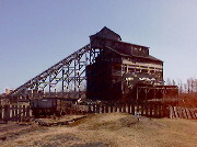 Lump coal from the mine was cleaned and sized in the breaker. Large rollers with projecting teeth broke the large lumps into marketable sizes. From the rollers, the coal passed through a series of metal screens which separated it into uniform sizes, each for a different use. The sized anthracite traveled down chutes manned by the breaker boys who picked out pieces of slate and rock. Cleaned and sorted coal was loaded into railroad cars at the bottom of the breaker. Not open to the public.