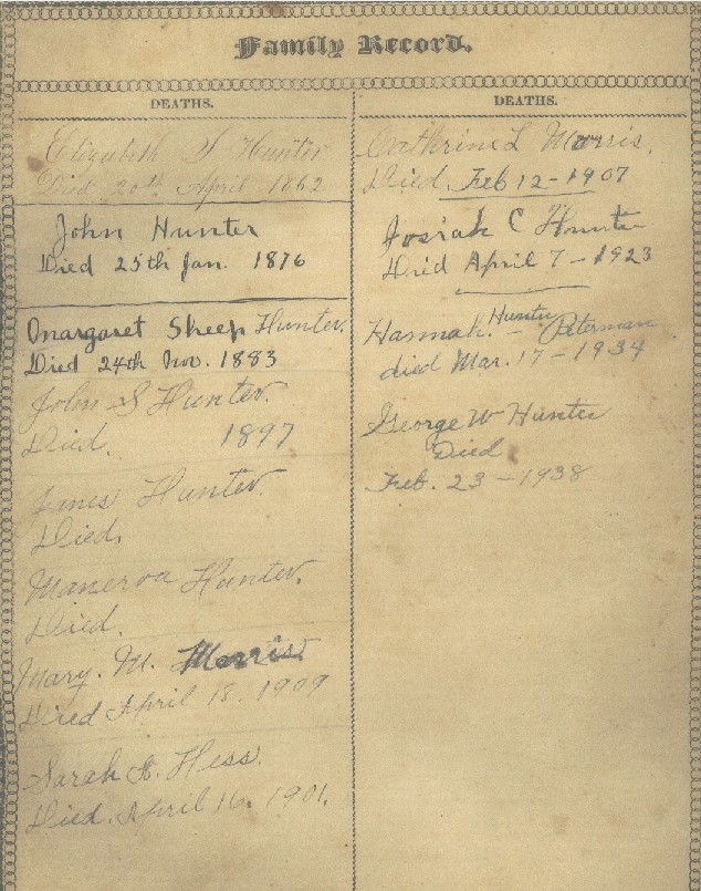 So, the Hunter family goes back to the "beginning of time" in the Davidson/Nordmont area. Presented here for the first time ever in a public domain are the three pages recording the births, deaths and marriages of the Hunter family.