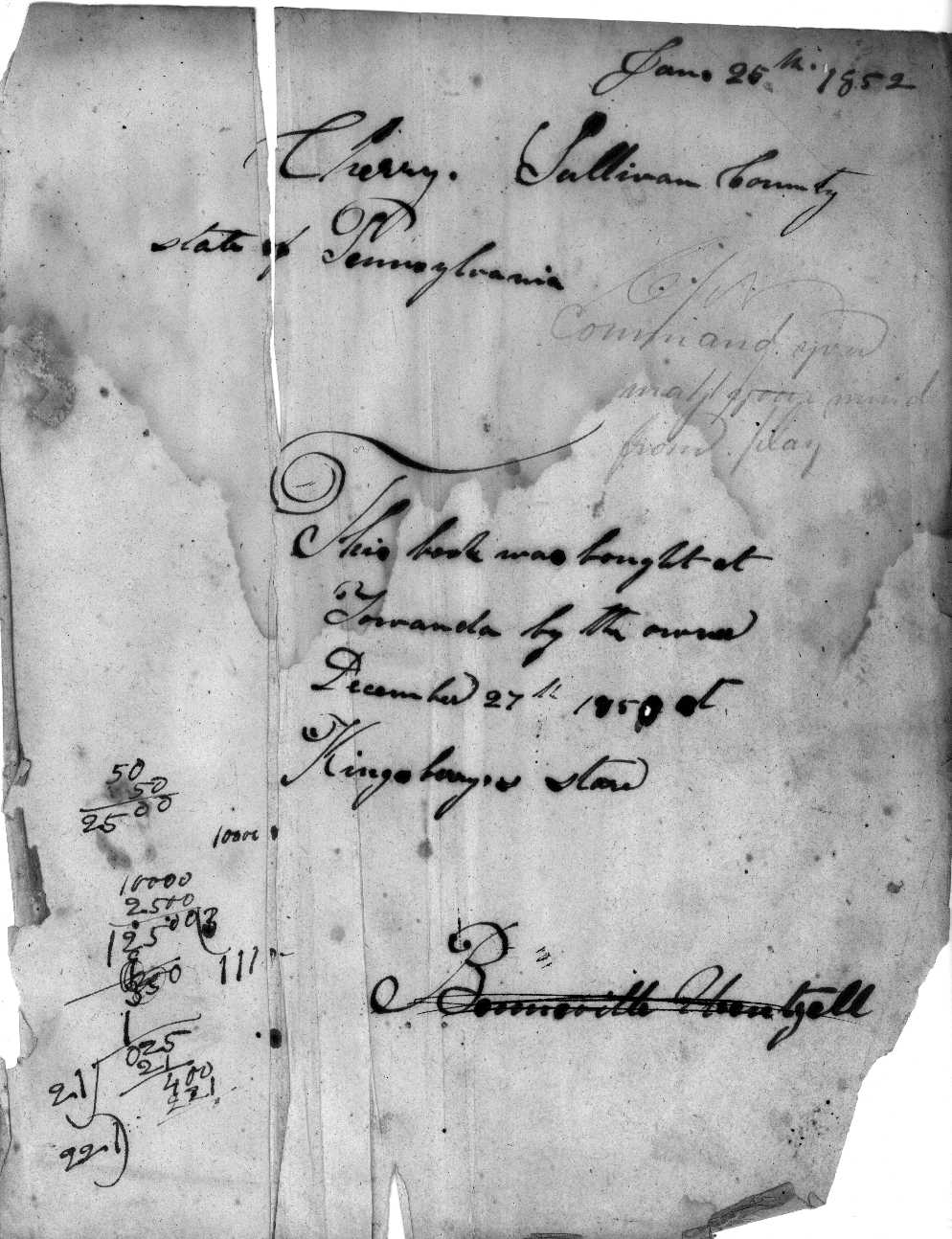 state of Pennsylvania"This book was bought at Towanda by the owner December 27th 1850 at Kingsberry’s store.