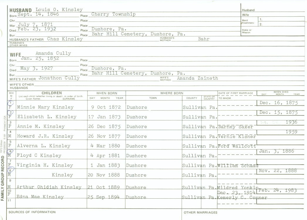 authored by James Kinsley. However, there was a completely unrelated second Kinsley family of German origin in Sullivan County and here we meet them. You can learn more about the actual lineage of the "German" Kinsley family at