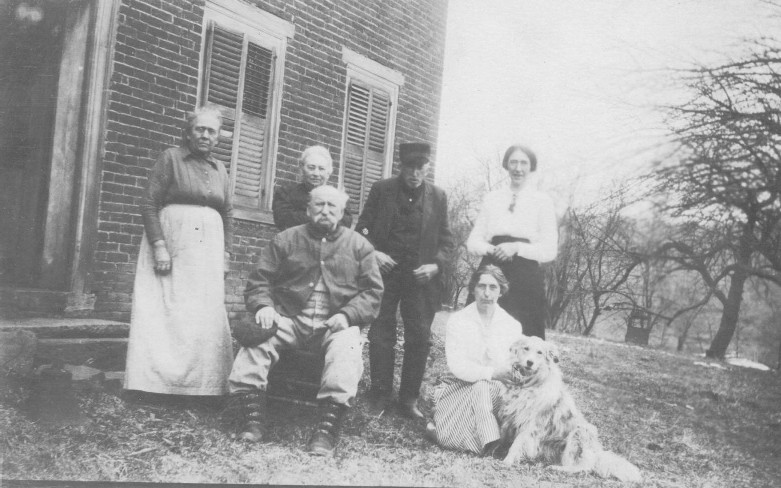 John is seated with Catherine on the far left. Lucinda Rebecca Thrasher and her husband Cyrus Conner Appear to be the Couple Behind John. The two younger women appear to be