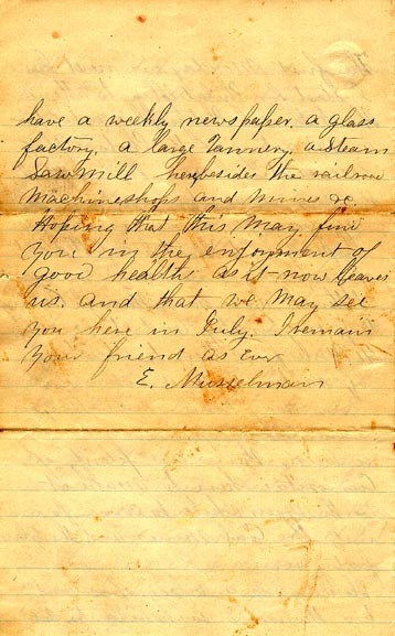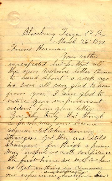 Letter to "Herman" from Edward Musselman March 26, 1871