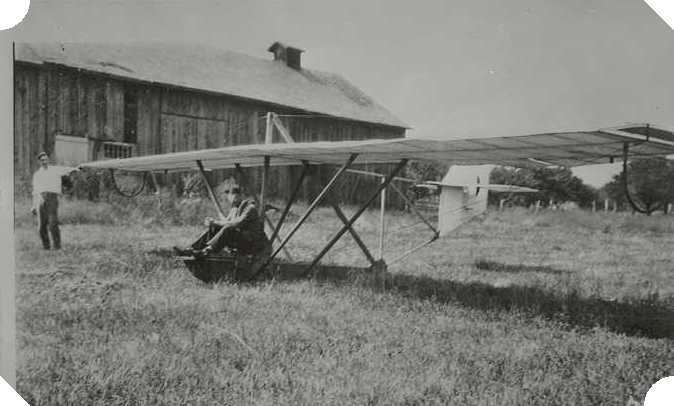 Leo McGuire is the grandson of Charles McGuire of Forksville. The McGuire family lived in the Forksville area for several decades and can be found represented in the Fairmount Cemetery there. Here are some recollections about Forksville in Leo's words. We also include several pictures of his father Francis and other McGuires who seem to have been a rather adventurous crew--from lumberjacks to amateur glider pilots!! In the glider-flying incident pictured below, Francis was the pilot of a plane built by William Simmonds and friends; his brother James McGuire drove the tow car. Later, it was learned that Francis broke his back in the landing. There are additional pictures of the "glider crew" and plane at the bottom of this page.