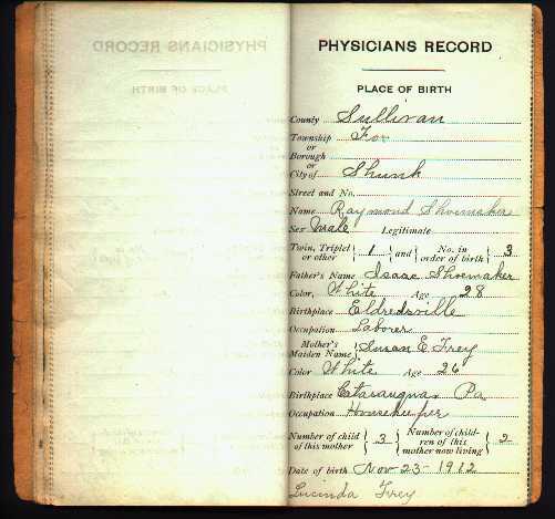 Copyright © 2001 Robert E. Sweeney and individual Contributors. All Rights Reserved. Prior written permission is required from Robert E. Sweeney and individual Contributors before this material can be printed or otherwise copied, displayed or distributed in any form. This is a FREE genealogy site sponsored through PAGenWeb and can be reached directly at ~Sullivan County Genealogy Project (http://www.rootsweb.com/~pasulliv)