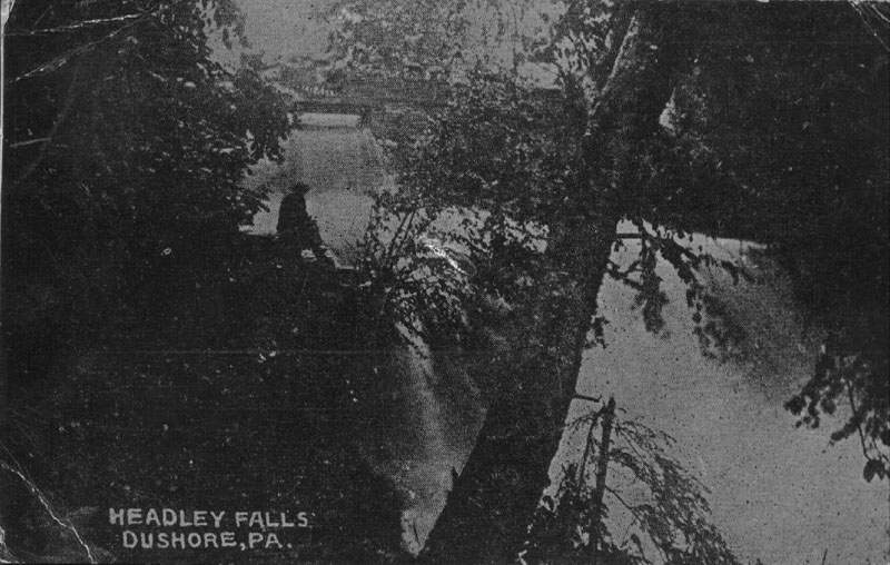 Theodore PHINEY, a native of Connecticut, built a log house near the falls, in what is now Dushore in 1819. He never occupied the house himself, but John STOWERS occupied it for some time. About 1818 a sawmill was built at the same place, this rotted down, and in 1825 or 1826, James MURRAY built a grist mill where the saw-mill had been located. The grist-mill was owned and operated by John DIEFFENBACH, from 1840 to 1850, when the property was sold to S.F. HEADLEY, just previous to the great flood, which took out the grist-mill and the mill pond. The mill was rebuilt by Mr. HEADLEY in 1854. In 1829, Matthew McDOWELL, erected a building for a store on the lands now owned by George H. WELLES, on the North side of Main street, and engaged in the mercantile business. The store was in charge of Henry W. COOPER, who later purchased the business of McDOWELL. Mr. COOPER erected another building as his business increased. On May 17, 1834, McDOWELL bought of Freeman FAIRCHILD, about four acres of land joining his store lot for $50. May 6, 1836, he sold the same land to B. COOLBAUGH, who sold out to Samuel JACKSON, March 21, 1837. Samuel JACKSON, was one of the leading businessmen of Dushore. His ancestors came to Pennsylvania with William PENN, locating in Chester Co. For many generations they were connected with the Society of Friends or Quakers. A branch of the family settled Catawissa, PA. From there he moved with his father to Toronto, Canada, where both engaged in manufacturing hats, being hatters by trade. In the war of 1812, Samuel JACKSON joined the United States army, holding the rank of Captain. At the close of the war the family moved to Cherry township, engaging in the mercantile business, first on Bahr's hill or Cherry hill, as it was then known. Seeing that the business interests would eventually be moved from Cherry hill to Dushore, or Mosier Hollow as it was then called, Mr. JACKSON moved his business from Cherry hill to the hollow, where Dushore is now located. The parents of Samuel JACKSON were Samuel and Hanna (DAVIS) JACKSON, and to them were born eleven children: