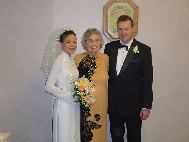 Bruce and Nghia Que Phem Sudlow Wedding Picture Taken with Margaret "Peg" Sudlow