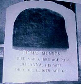 the old Munson marker stone was placed within the new. The photo below was taken by Sara Waskuch. The original marker reads: Thomas Munson, Died March 7, 1685 age