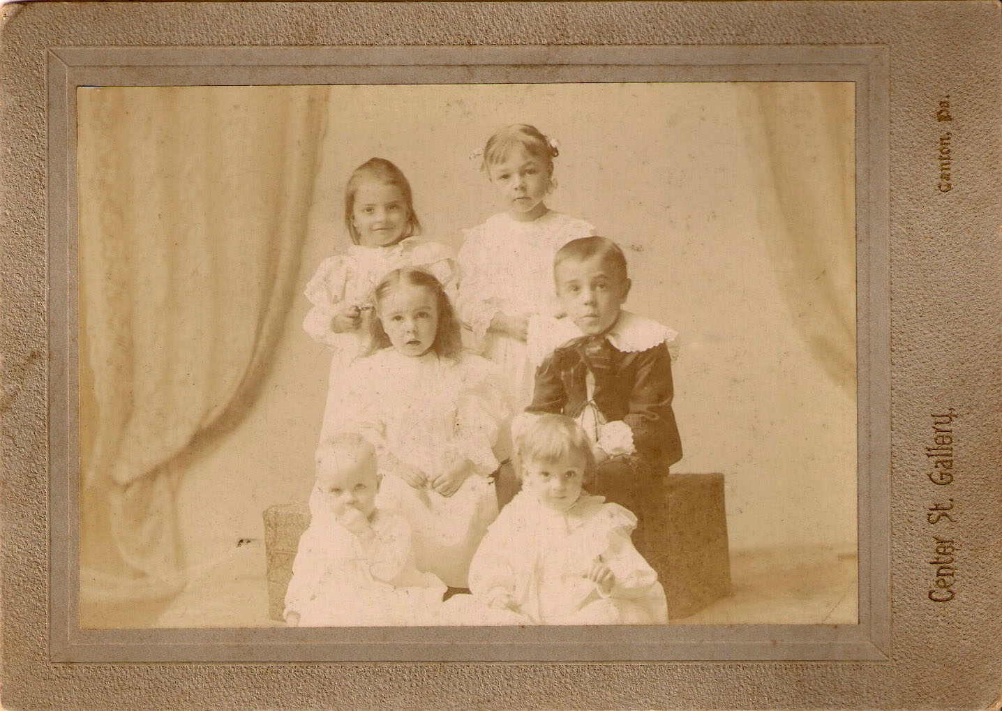 Thanks to Lynn Franklin, we have acquired further information about the Wrights and this Hoagland family from census records. Isaac's Death Certificate shows that he was born and died in Southampton, Bucks County, PA. We know from census information that he and Louella lived with their children in North Carolina (1900), New Jersey (1905) and Chester County, Pennsylvania (1910) at different times, but eventually returned to Bucks County. He and Louella are buried there. They had several children: Anne E., Justus M., Donald R. and Elias W. up through 1910. Here is a photo of daughter Anne with her "Wright" cousins, taken around 1900 in Canton, PA: