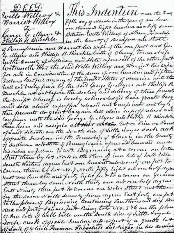 Source: Deeds Book, Sullivan County, page 169, Laporte, PA