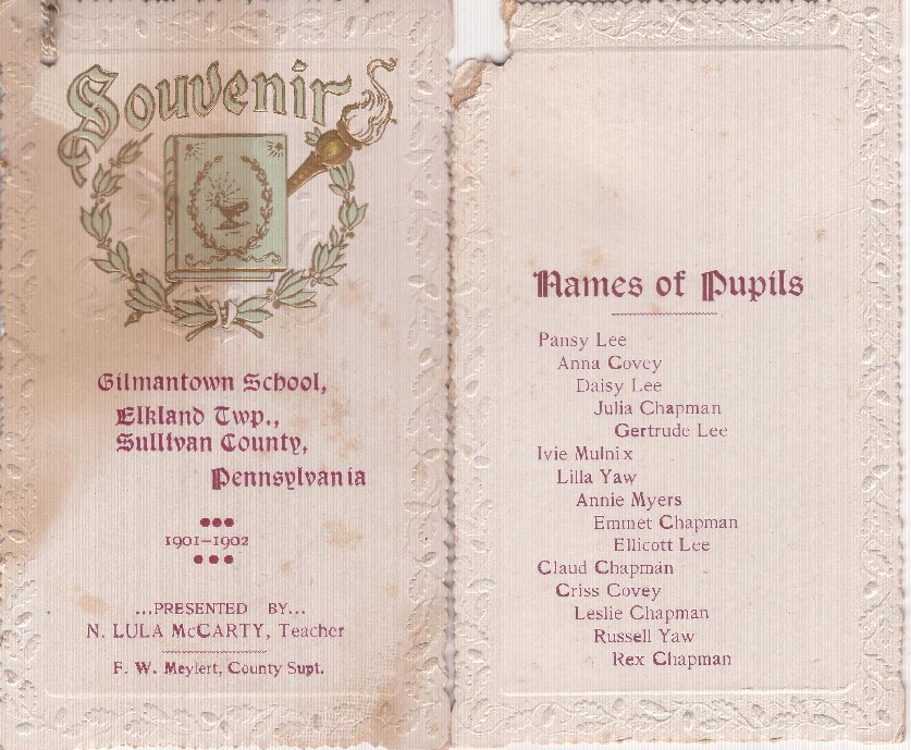 remembrance card was rolled up and hidden by Ruth Elizabeth Kishpaugh Myers with several other old family things. Note: The 1900 Federal census for