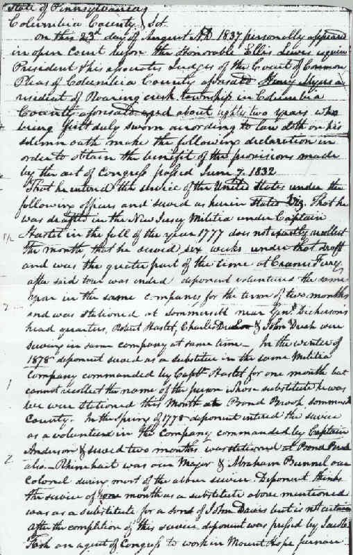 served on the NJ Line during the Revolution. Someone from Columbia County, Pennsylvania had