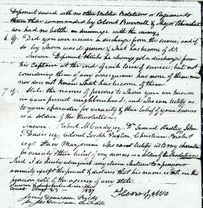 pension in 1837 himself when he was 82 years old. The depostion he gave proves very insightful as well.