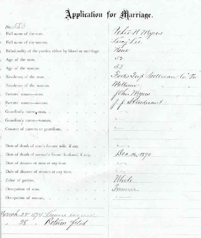 Bob, here are several genealogy reports for ancestors of mine. My Myers ancestors lived in Cherry Township for