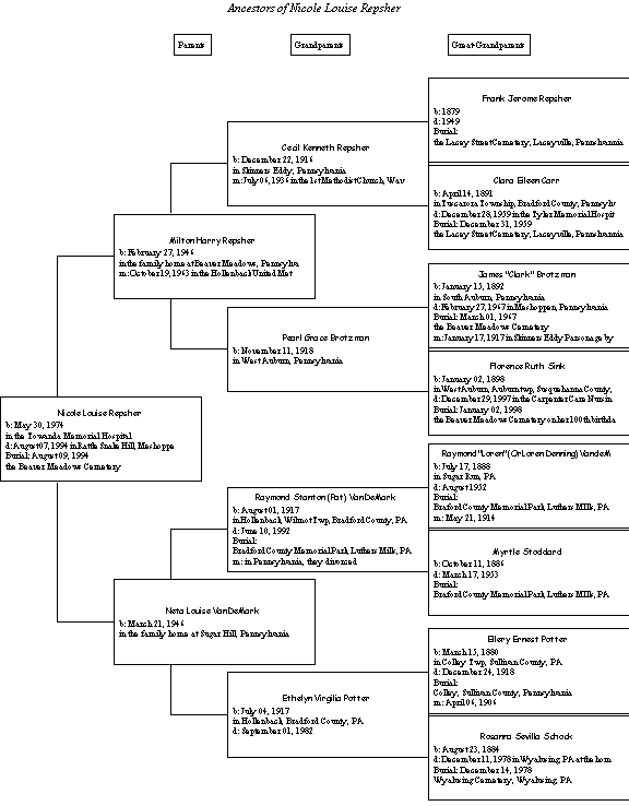 Carol would like to dedicate this composition to the original author of most of this work, Evelyn Virginia Potter Keeney, and her niece, Nicole Louise Repsher. Both are gone now but not forgotten.