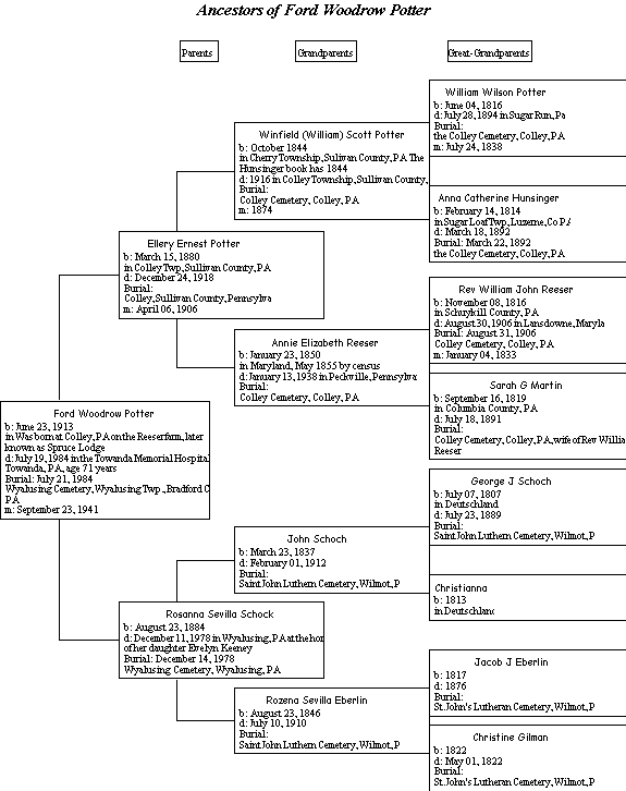 Sullivan County, PA. William and Rachel are the parents of William Wilson Potter. Much of the Potter information published here