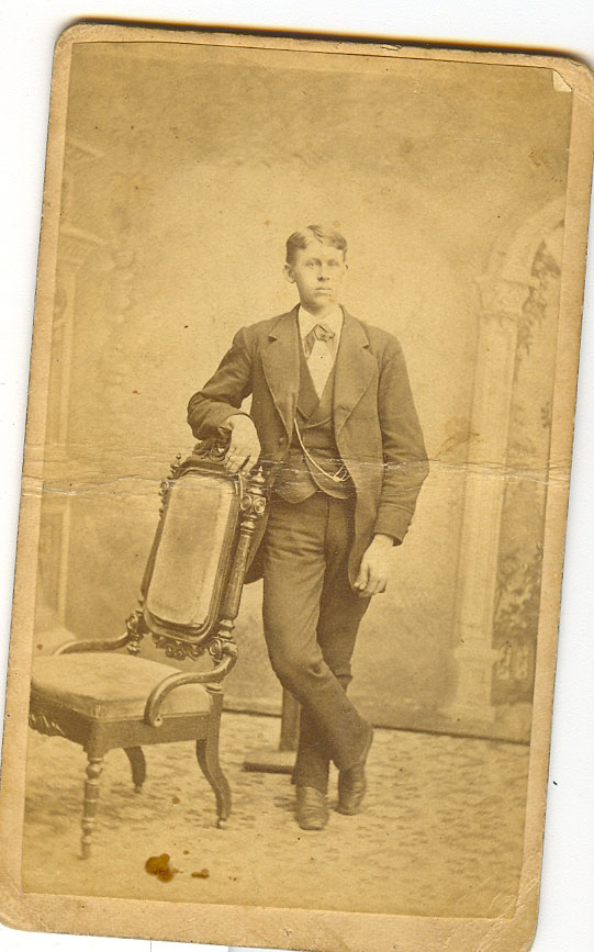 Larry Pardoe has given us insights into some of these relationships: Hannah Battin was, as she herself indicated, Lewis' grandmother, having married first John M. Warburton and then Joseph Battin. David E. Williams at the time was married to Lewis Wilber's third cousin, Matilda Lillian Battin, later divorced. Frances "Franny" Watts later married Thomas Earl Williams [see obituary of her son, Clifford S. WIlliams, Sr., in the Appendix below], but we have not yet found a relationship to Lewis Wilber; perhaps he is related to David E. Williams and that is the connection. Ella Warburton was first cousin to Lewis Wilber, the daughter of Charles M. Warburton and his second wife Estella. Elmer may be Elmer E. Miller, three years older than Lewis Wilber; Elmer later married Jessie E. Potter. L. M. Brown is likely Listen/Liston M. Brown, b. 1858, who later married Anna E. Stull. Listen was a half brother of Lewis Wilber; he was born to Angeline (Warburton) (Brown) Wilber and her first husband, William Brown. A picture of their son, Hiram Brown, is shown below. Lillian Ellsie Porter, b. June 17, 1872, Iowa, was the daughter of John P.