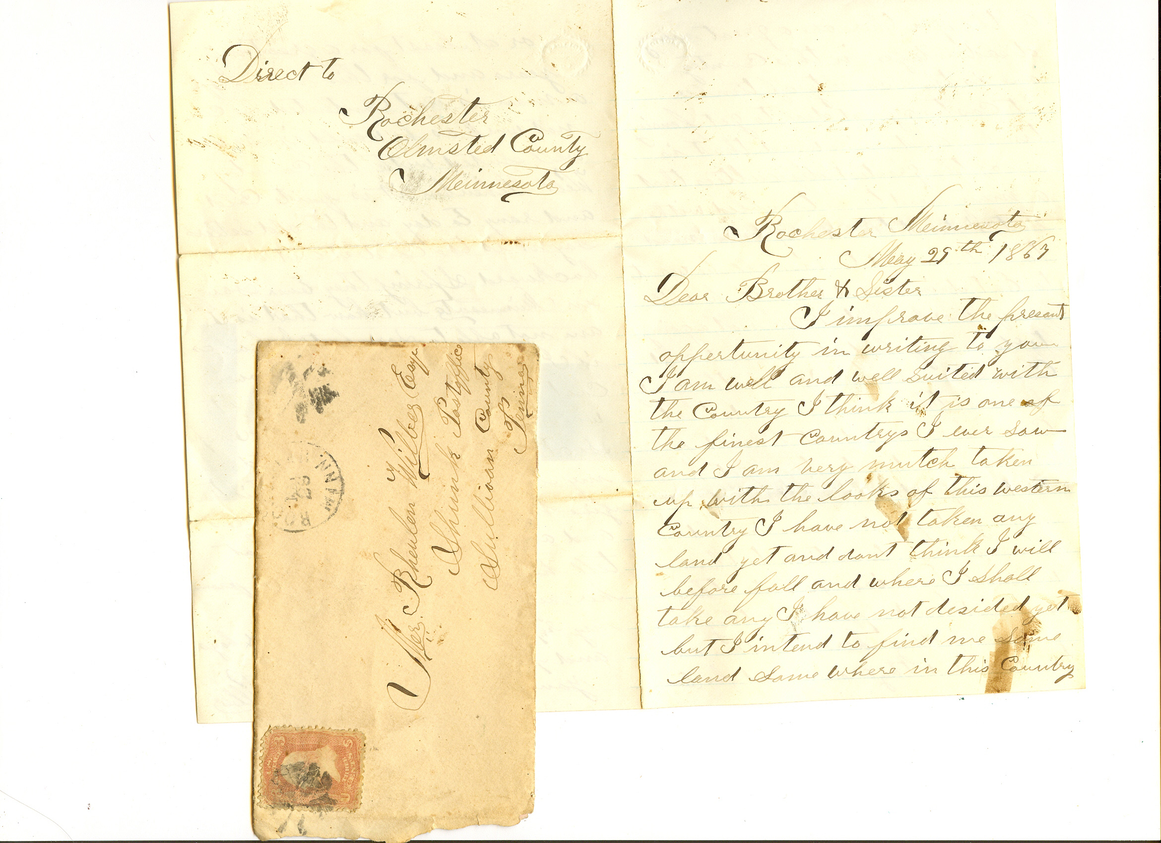 A Letter from Minnesota May 29, 1867 From John Wilber to His Brother, Rheuben Wilber and Rheuben's Wife, Angeline (Warburton) Wilber First Page and Envelope Cover Source: The Wilber Estate Collection Sullivan County Historical Society and Museum, Laporte, PA