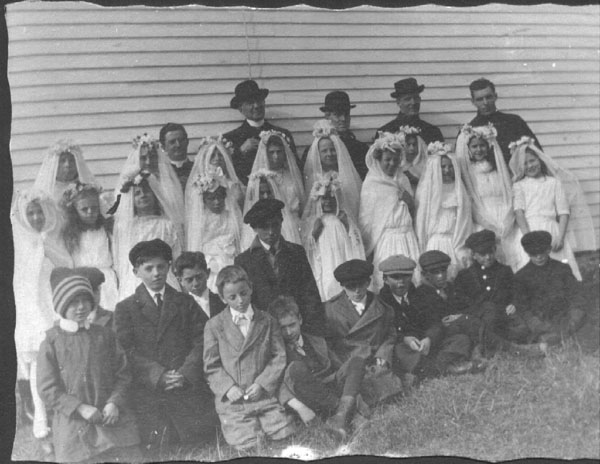 The next picture shows the First Communion class for Betty Jordan, adopted daughter of James and Catherine Jordan Philbin Harrison. It may have been taken