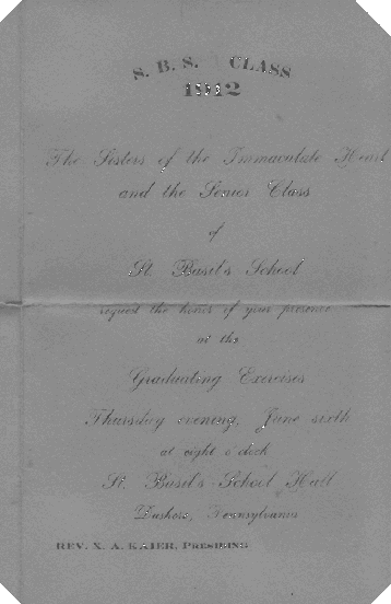 Funeral services were held from the Tubach Funeral Parlor on Water Street, Friday morning, with requiem mass at St. Francis Xavier Church, Overton at 10 o’clock, Burial in the adjoining cemetery.