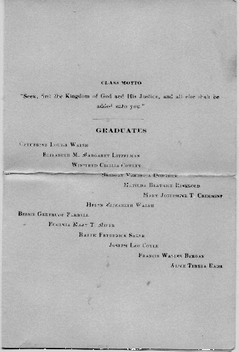 First Communion Class About 1910-1915 Agnes Elizabeth "Betty" Jordan in Second Row, Second from Left
