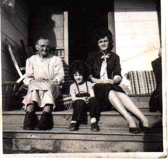 King and Great-granddaughter Donna Marie King Family Homestead Porch in Lopez 1954