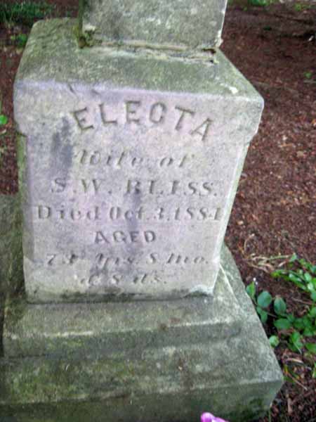 | BLISS | ELECTRA (Erona Brown) | ( 1811) | Oct 3, 1884 | Age 73 yrs 8M 8Dys; Wife of S.W. Bliss | View Photo |