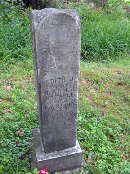 | BROWELL | EDITH J. | ( Jan. 23, 1881) | Aug 23,1902 | Aged 21 yrs 7 ds ; Dau. Of R. A. & M.J. Browell | View Photo |