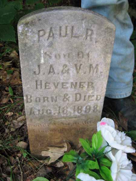 | HEVENER | PAUL R. | Aug 18, 1898 | Aug 18, 1898 | Son of J.A. & V.M. Hevener | View Photo |