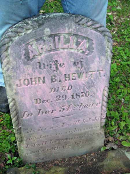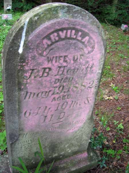 | HEWITT | ARVILLA | May 19,1882 | Age 64 yrs 10M 11 Ds ; "Was a kind & affectionate wife,mother & Friend" | View Photo | |