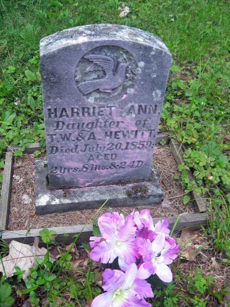 | HEWITT | HARRIET ANN | d July 20, 1859 | Aged 2yrs 8m & 24 dys ;Daughter of T.w & A Hewitt | View Photo | |