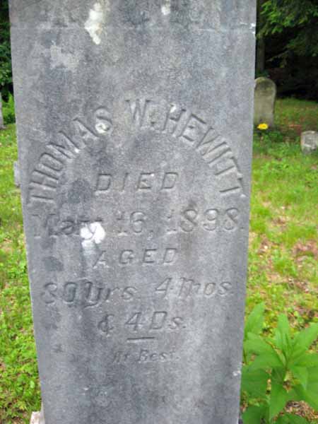 | HEWITT | JOHN B. | Oct 4,1897 | Age 82yr 5M 20 Ds. ; "The morning cometh" | View Photo | |