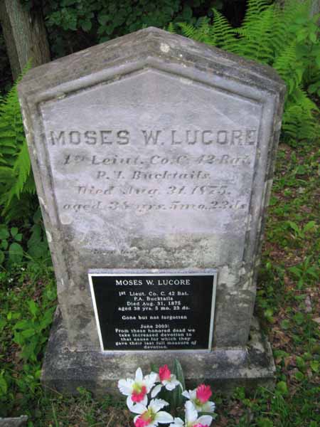 | LUCORE | MOSES W. | Aug 31, 1875 | 1 st Lieut. Co. C. 42 Rgt. P.V. Bucktails | View Photo | |