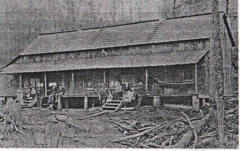 MOUNTAIN CAMP: The first camp at the top of mountain above Kettle Creek. The barn at this camp burned on April 3, 1905 and all horses and oxen were lost except one horse.