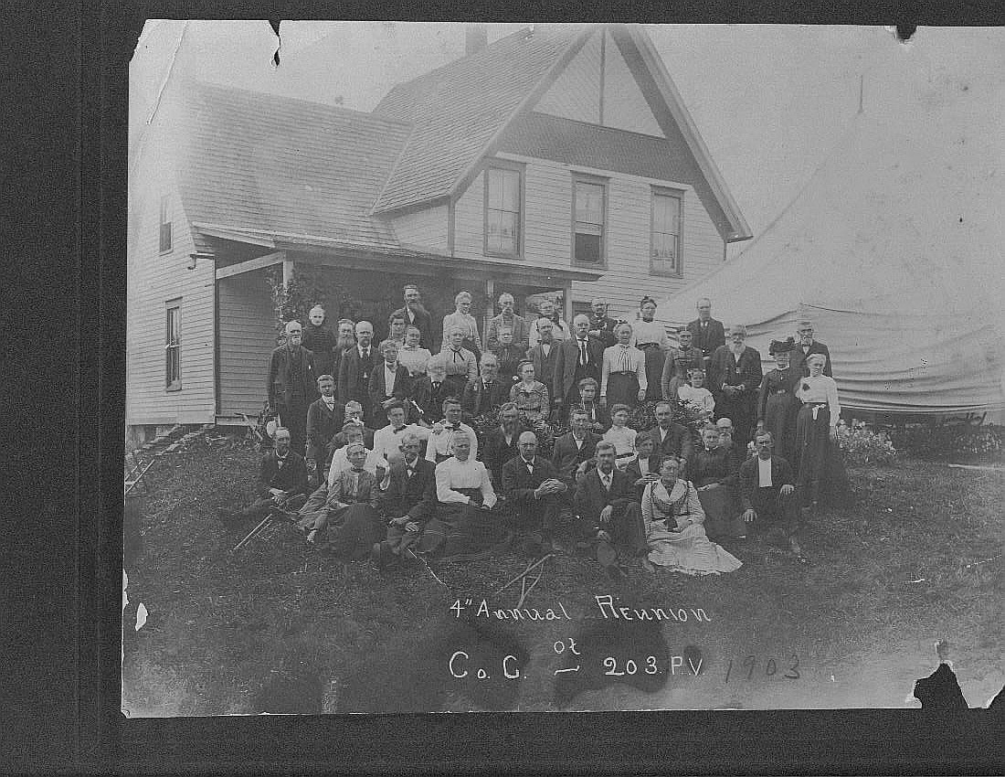 a guild meeting at the home of John Streby in 1898. We do not know which guild was meeting or picnicking there.