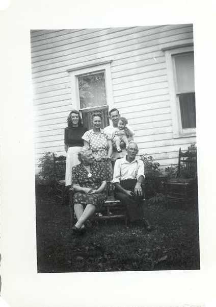 Note: The standing couple on the flanks is Leo and Breeze Havens. Leo is holding their daughter, Shirley Havens. Leo Havens was a grandson of Charles and Bernice via Leona (McGuire) Havens, his mother. In fact, the woman in the center is Leona, born in Forksville, PA on 8 Sep 1897, died Jan 1999 in Elkland, PA.