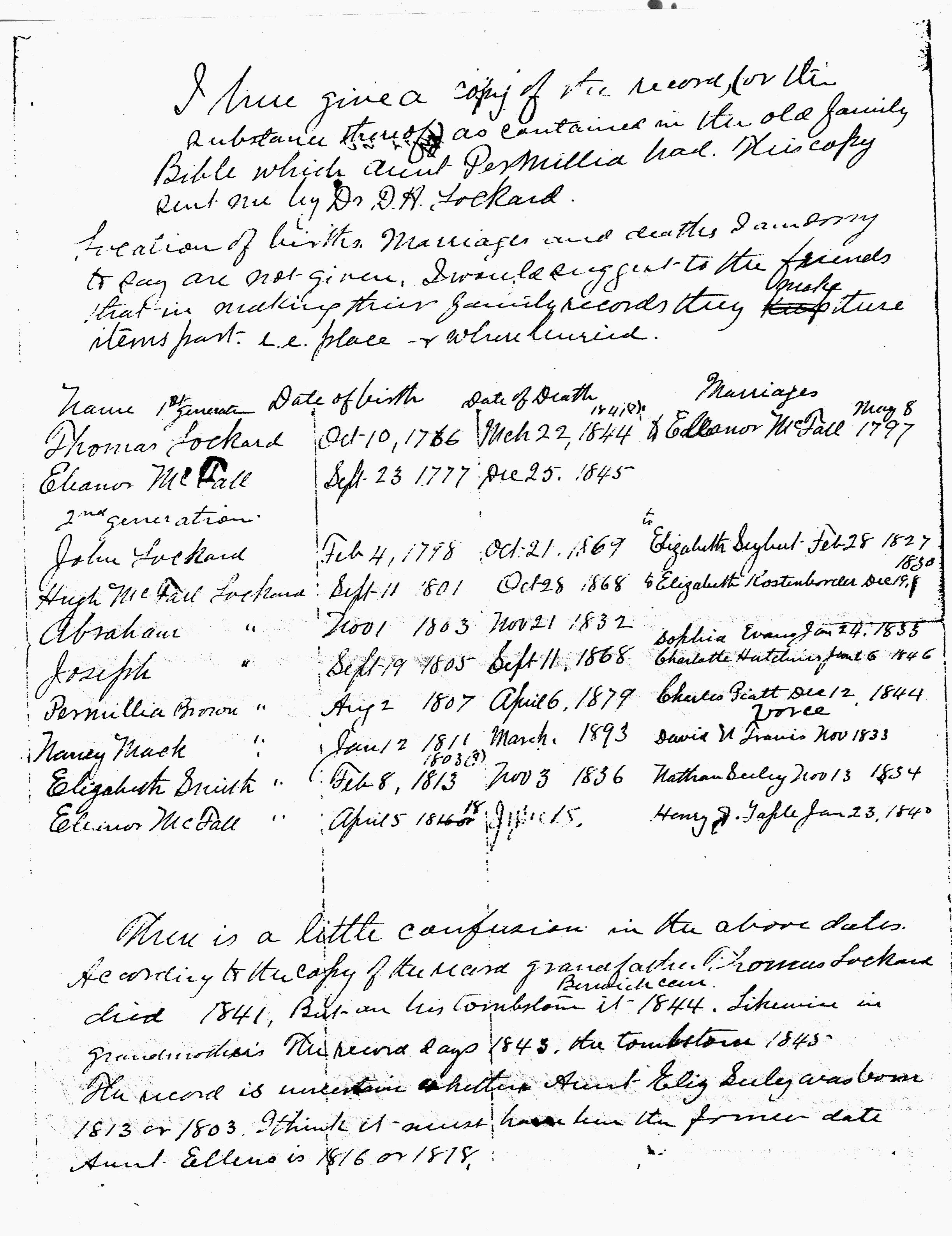 Lockhard (1811-1893). Nancy in turn was the daughter of Thomas Lockard (1766-1880)