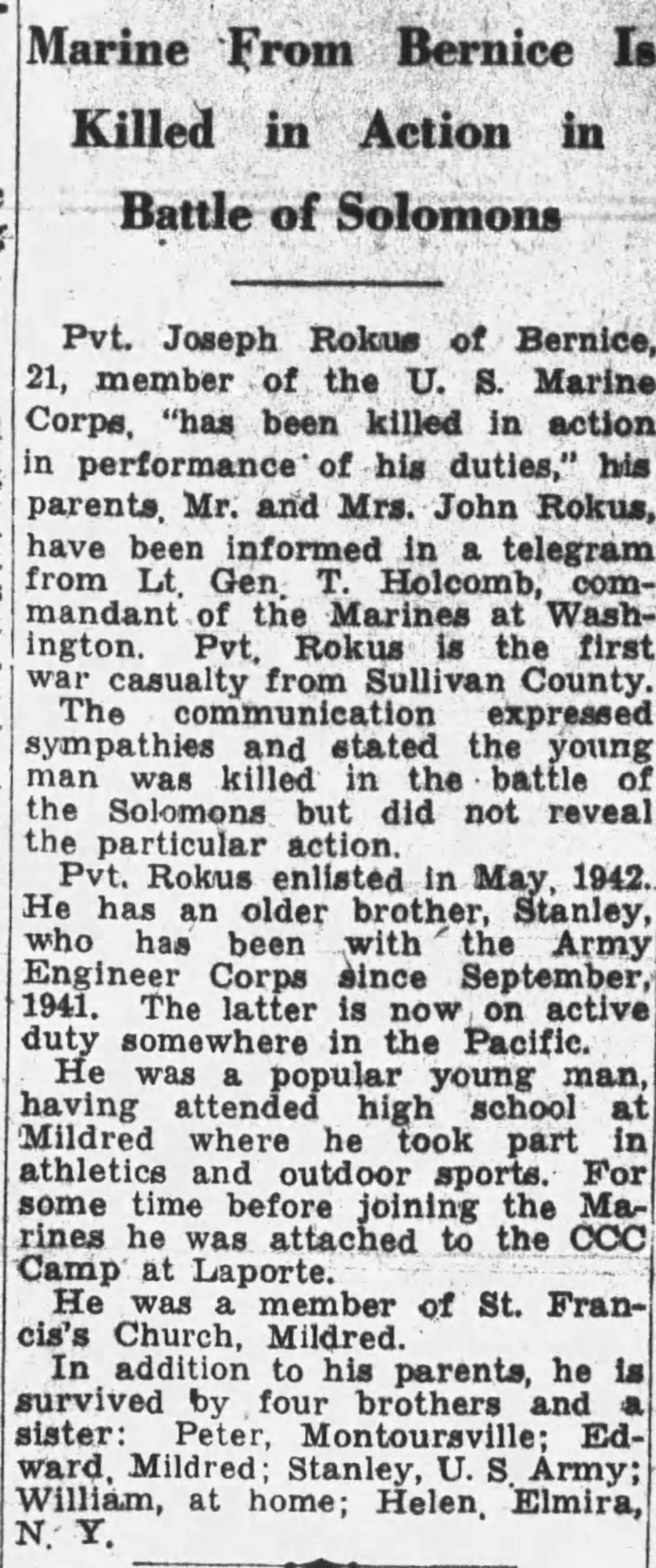 | Rokus | Joseph | Marines | PVT | Photo Obit |