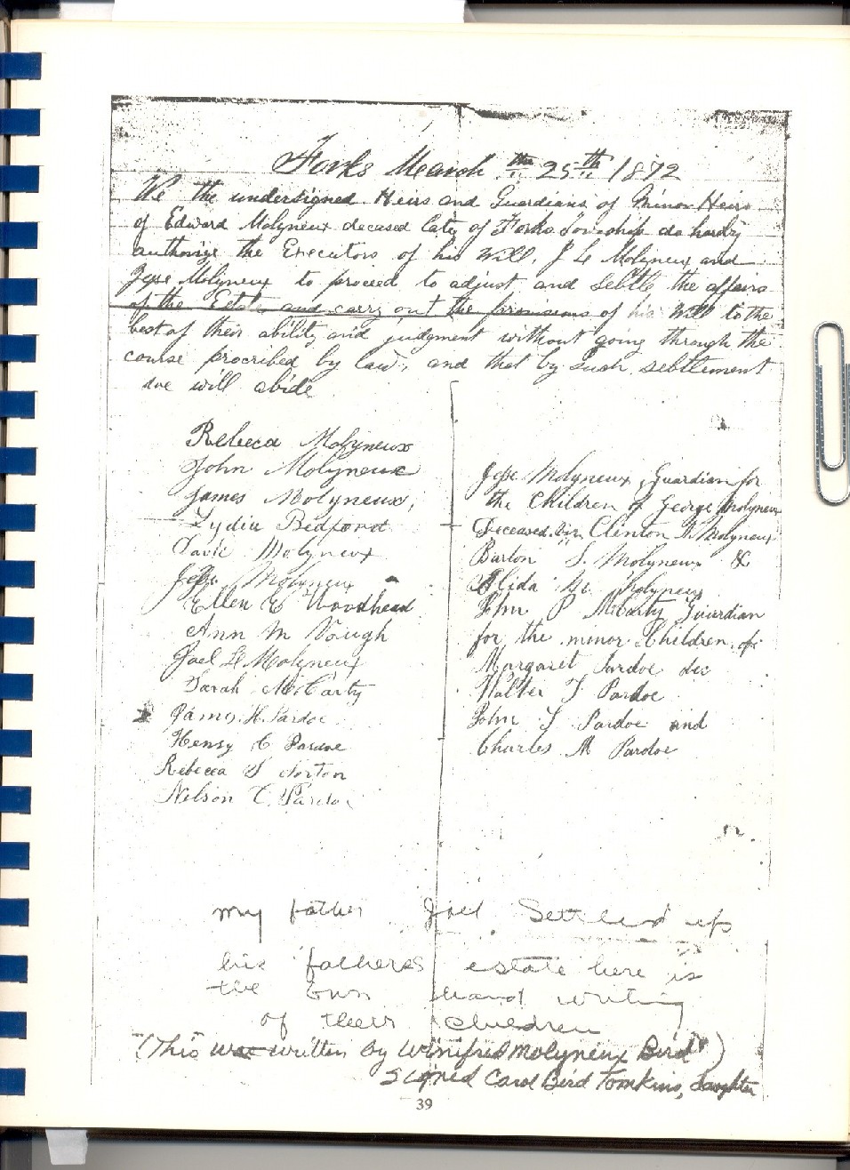 prepare a genealogical record of the family of William Molyneux and descendants,