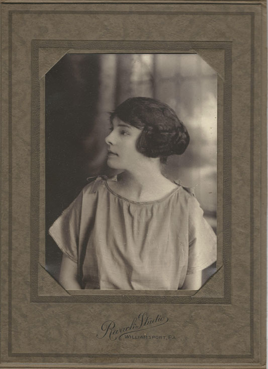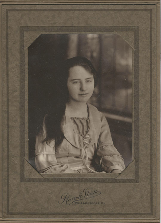 The next two photos show young women who may be sisters. Both photos were taken at a studio in Williamsport--==hard to decipher, but perhaps "Ranck" or "Rarick" Studio.