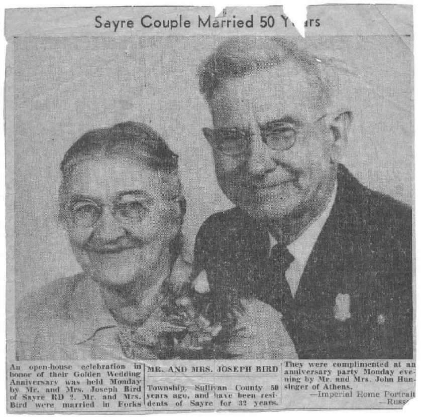 Copyright © 2001 Robert E. Sweeney and individual Contributors. All Rights Reserved. Prior written permission is required from Robert E. Sweeney and individual Contributors before this material can be printed or otherwise copied, displayed or distributed in any form. This is a FREE genealogy site sponsored through PAGenWeb and can be reached directly at ~Sullivan County Genealogy Project (http://www.rootsweb.com/~pasulliv)