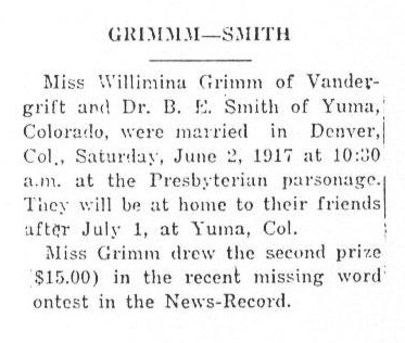 | Smith, Kathryn Arveta | 15 Mar 1911 | David Ray Himes | ||||||||||||