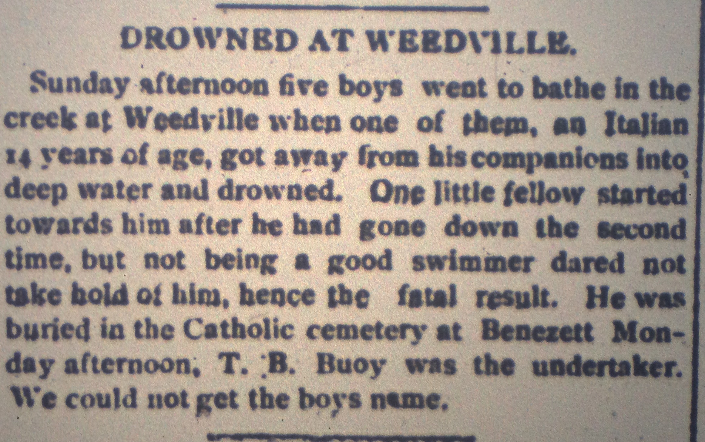 | Aug 24 1889 Italian drowned Saturday Sentinel |
