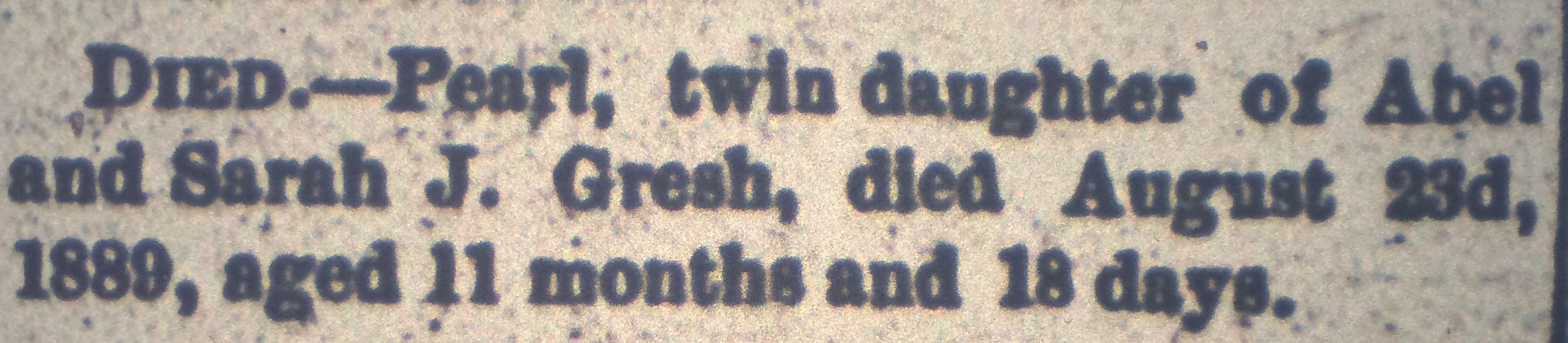 | Aug 31 1889 Pearl Gresh Saturday Sentinel |