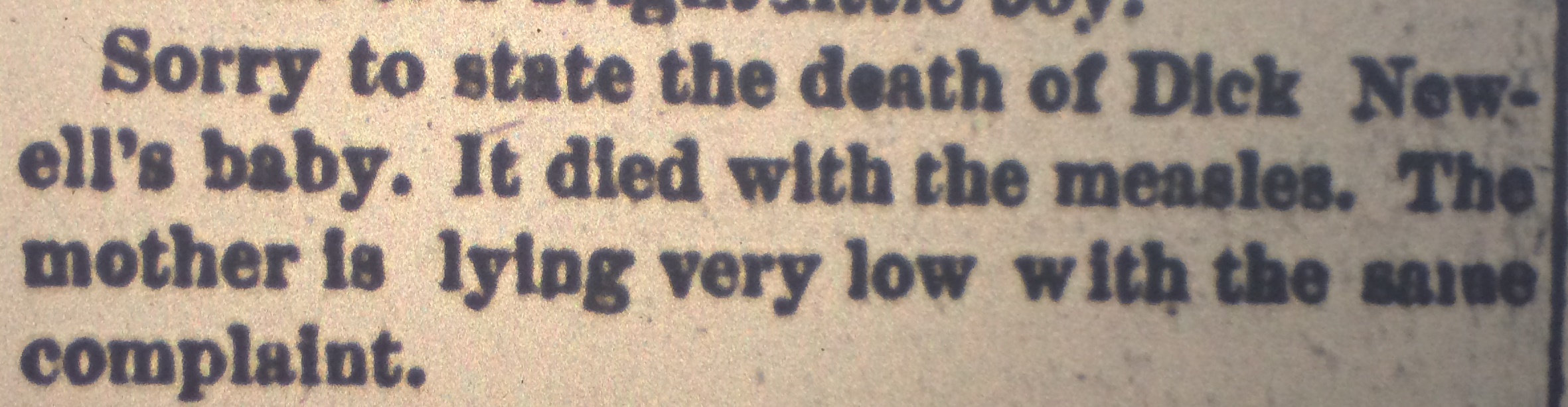 | Feb 2 1889 Dick Newell_s baby Saturday Sentinel - |