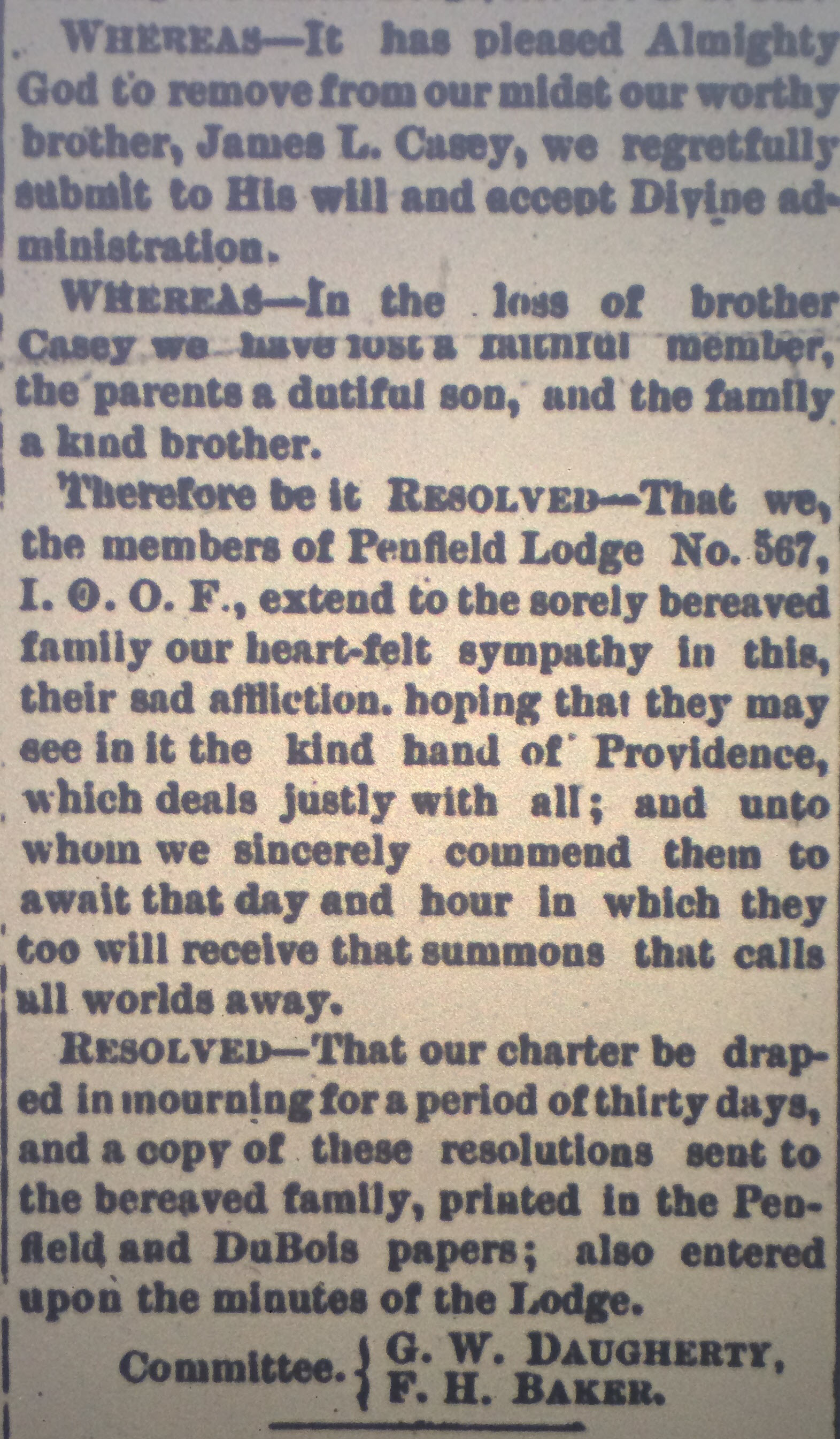 | Jul 13 1889 James L. Casey Lodge removal Saturday Sentinel |