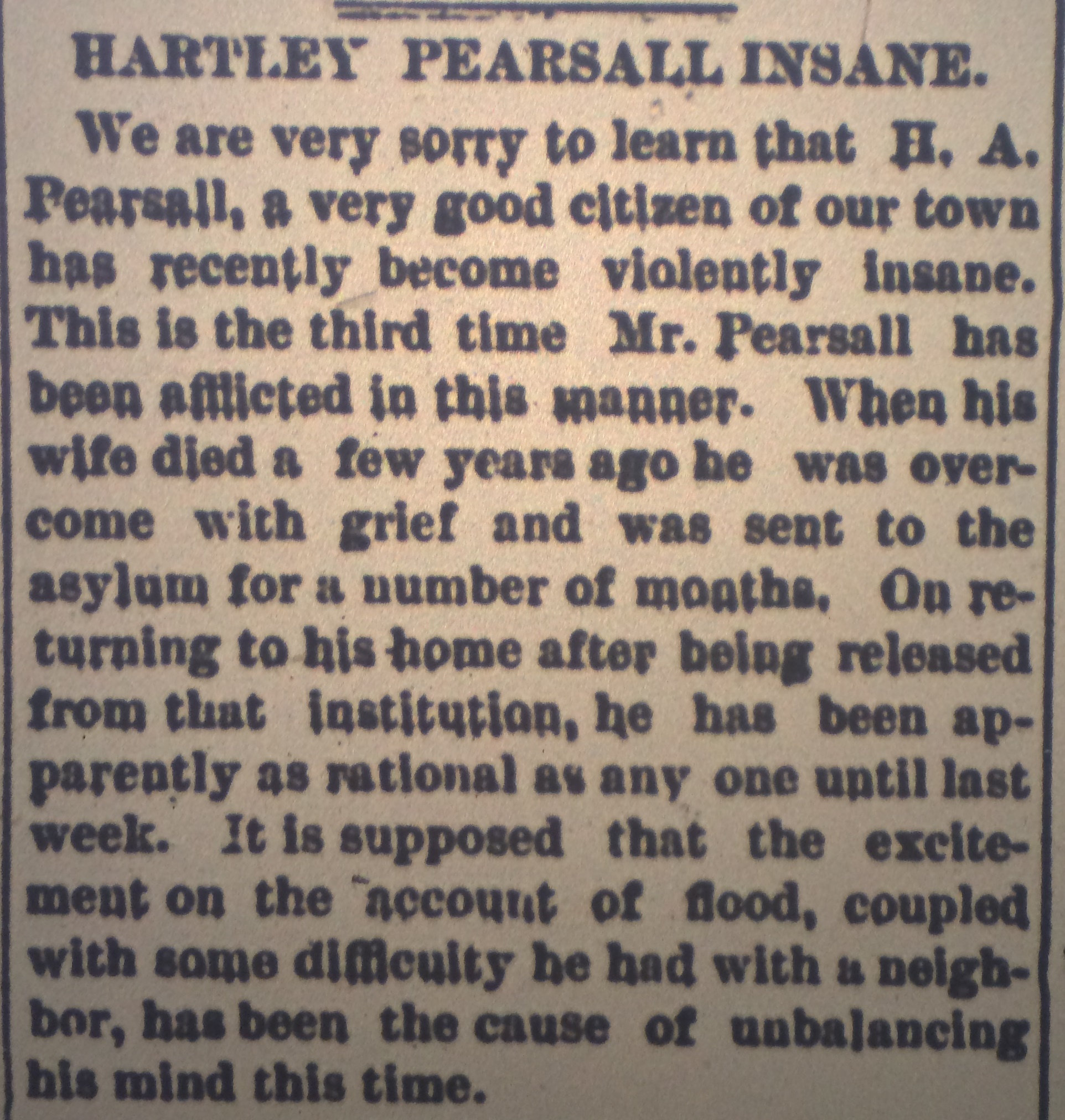 | Jun 15 1889 Hartley Pearsall insane Saturday Sentinel |