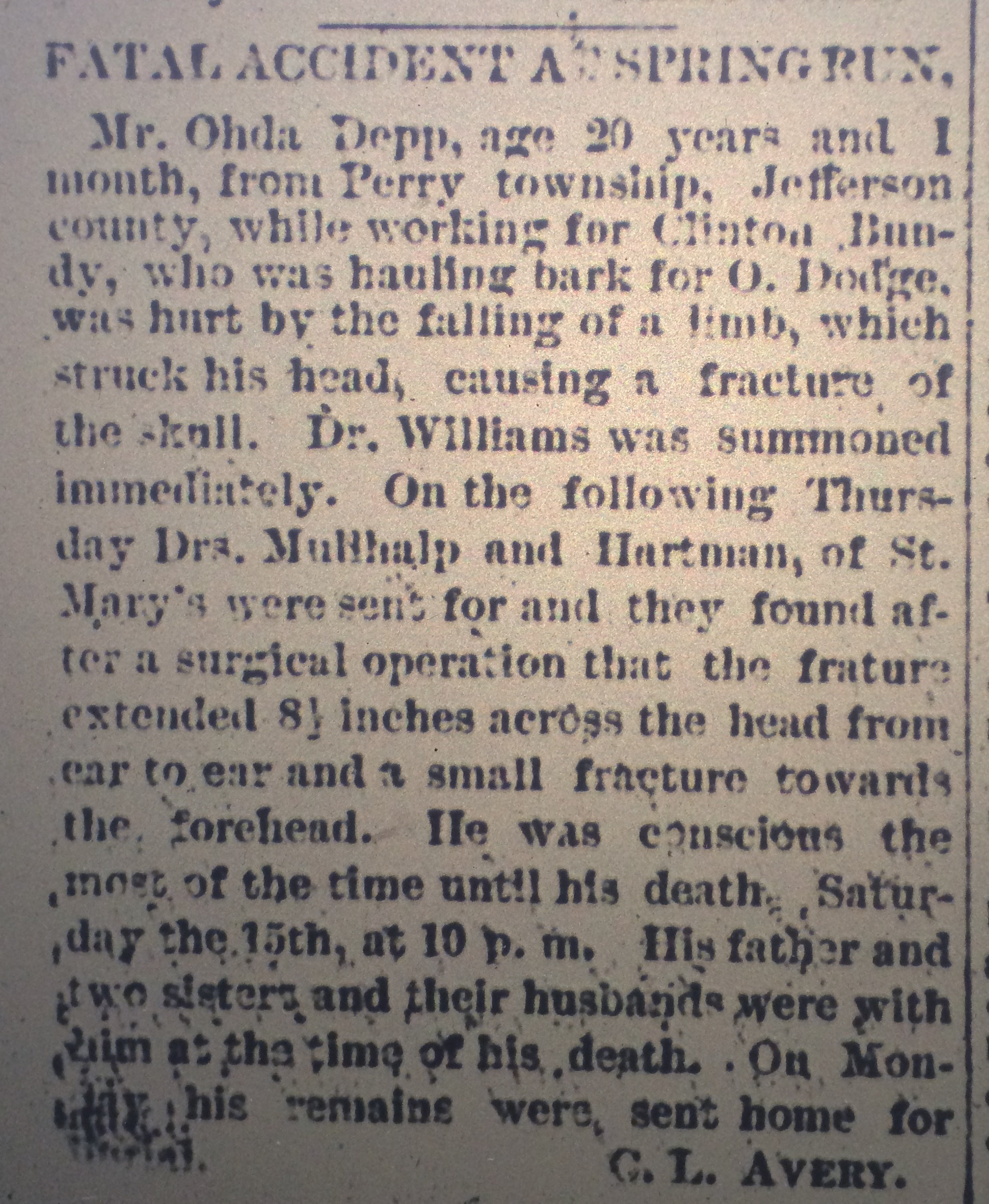 | Jun 22 1889 Ohda Depp Saturday Sentinel |