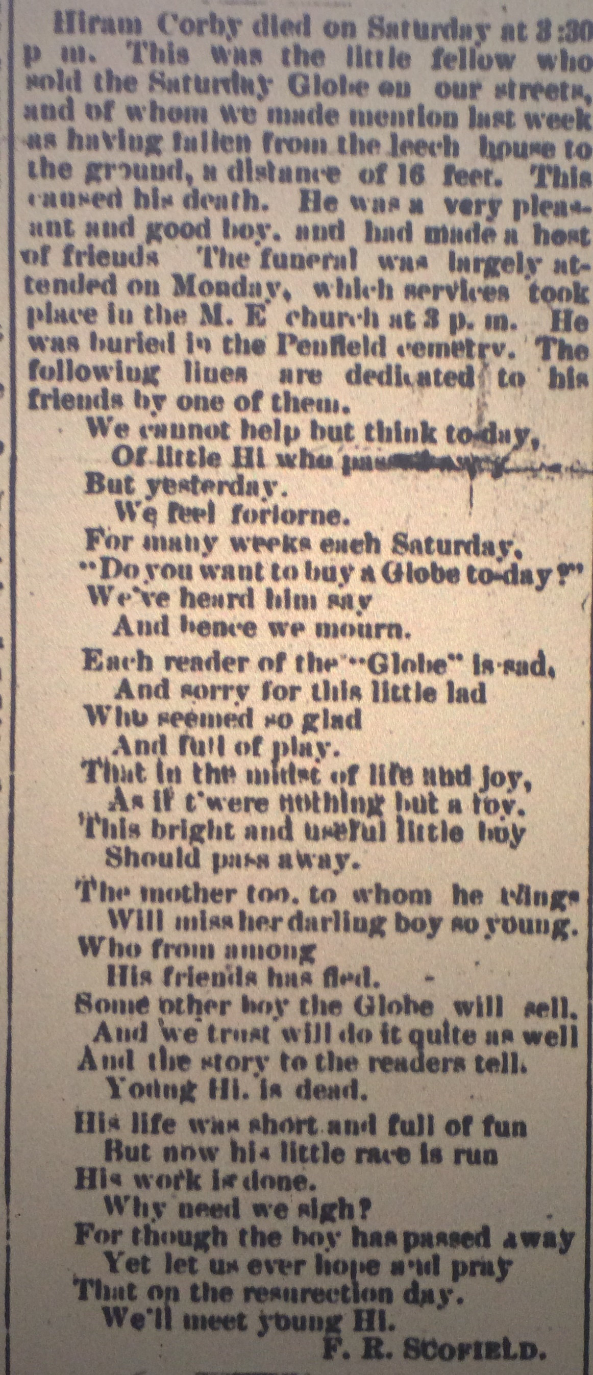 | Mar 2 1889 Hiram Corby Saturday Sentinel |