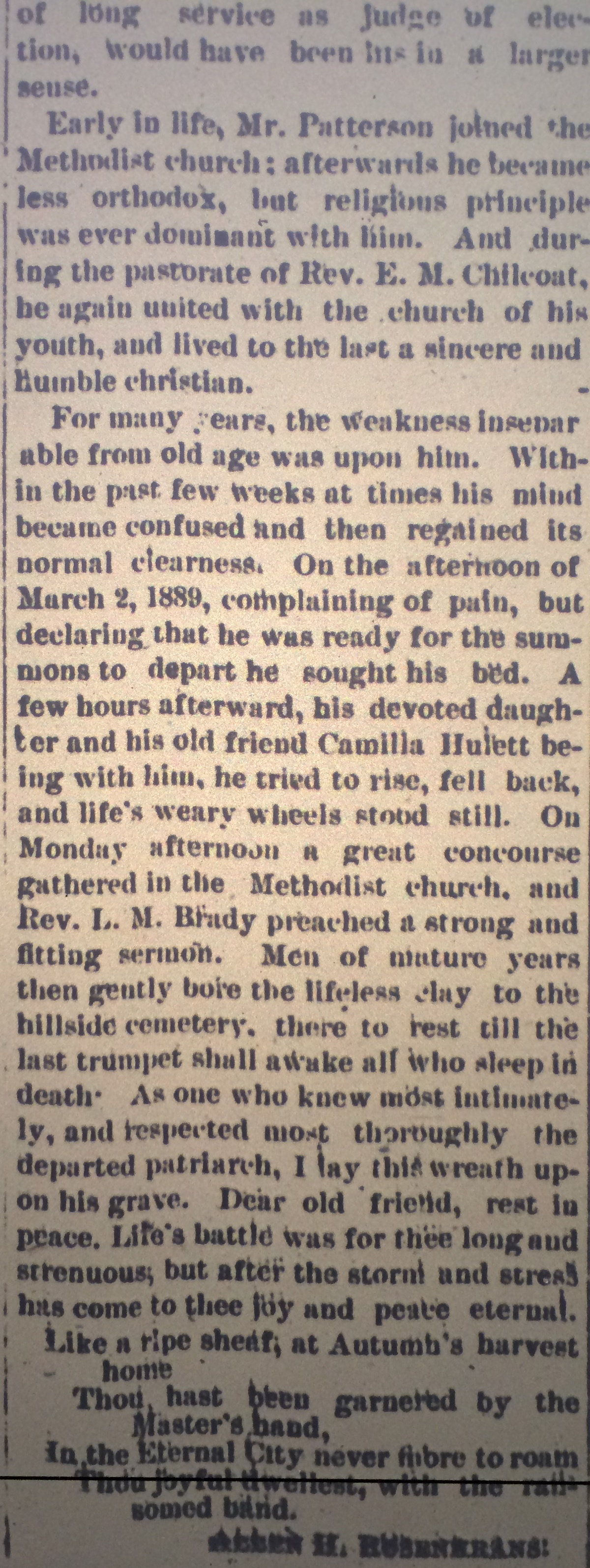 | Mar 9 1889 Erasmus Patterson p.2 Saturday Sentinel |