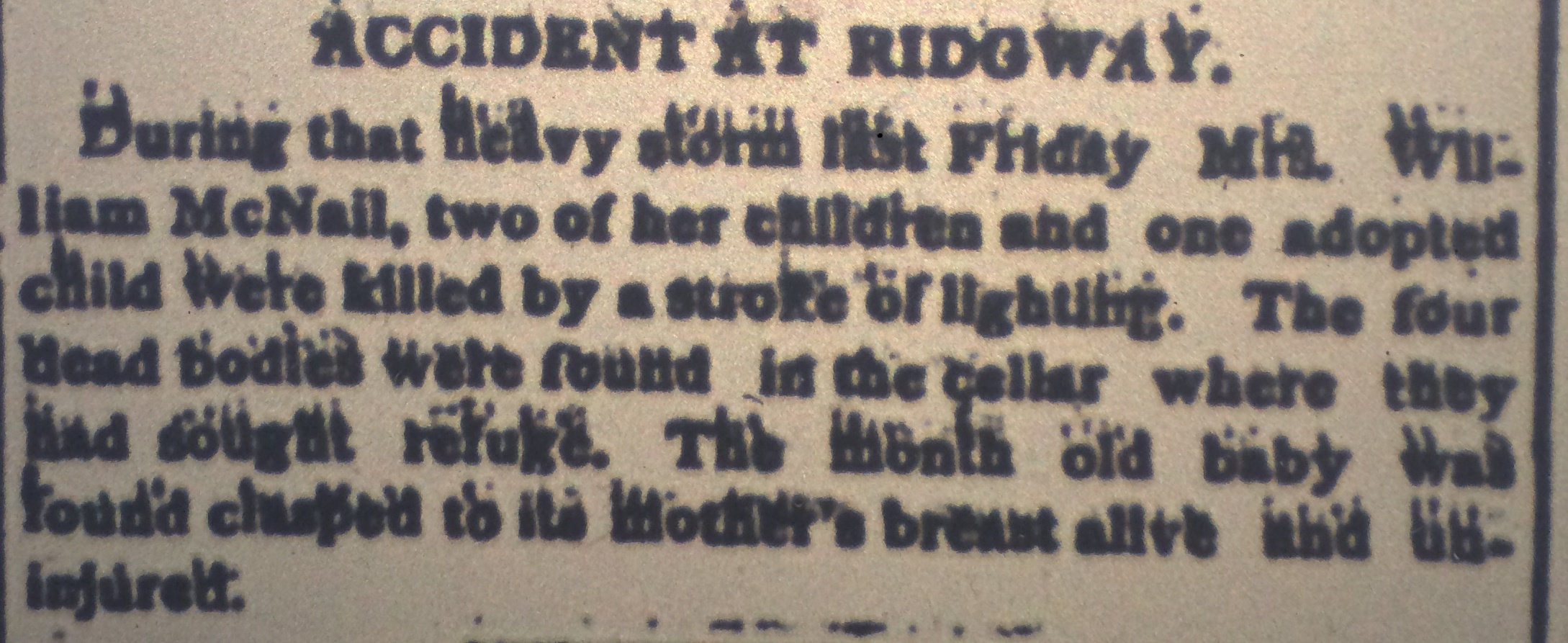 | May 18 1889 Mrs. William McNail and 3 children Saturday Sentinel |